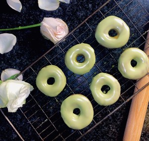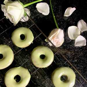 Recipe for my Vegan Matcha Baked Yeast Doughnuts: